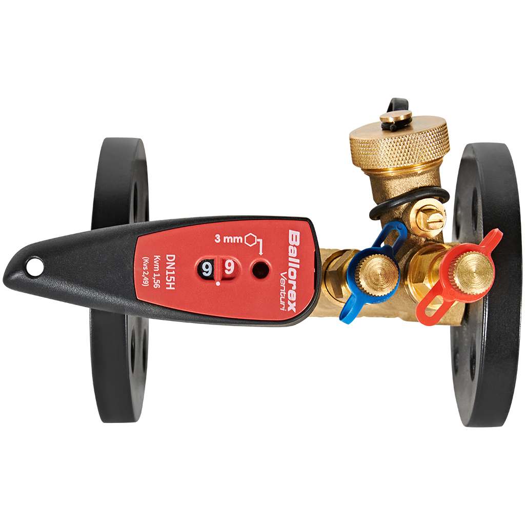 Балансировочный фланцевый клапан БРОЕН Venturi FODRV с DN 15, PN 16, ручным управлением, высокой пропускной способностью и дренажем. Предназначен для точной регулировки и стабилизации расхода в системах отопления, холодоснабжения и водоснабжения.