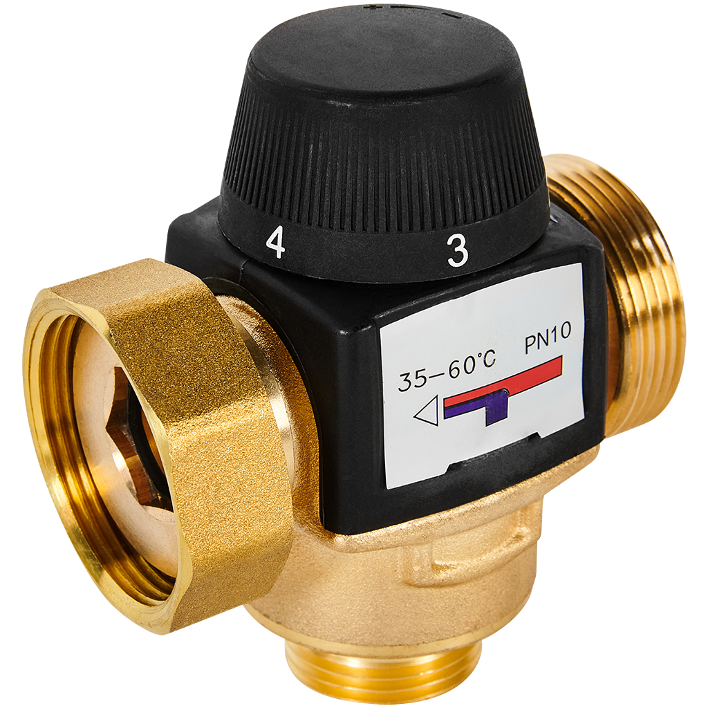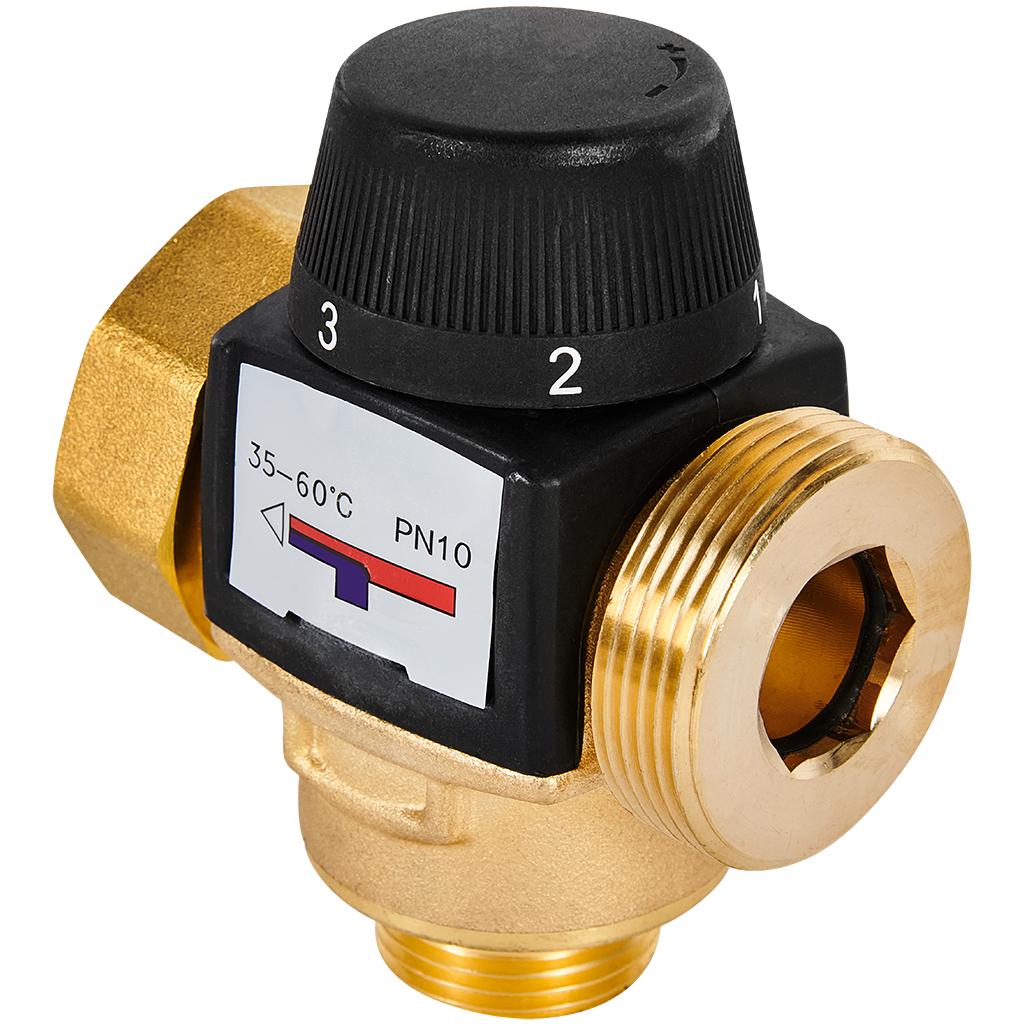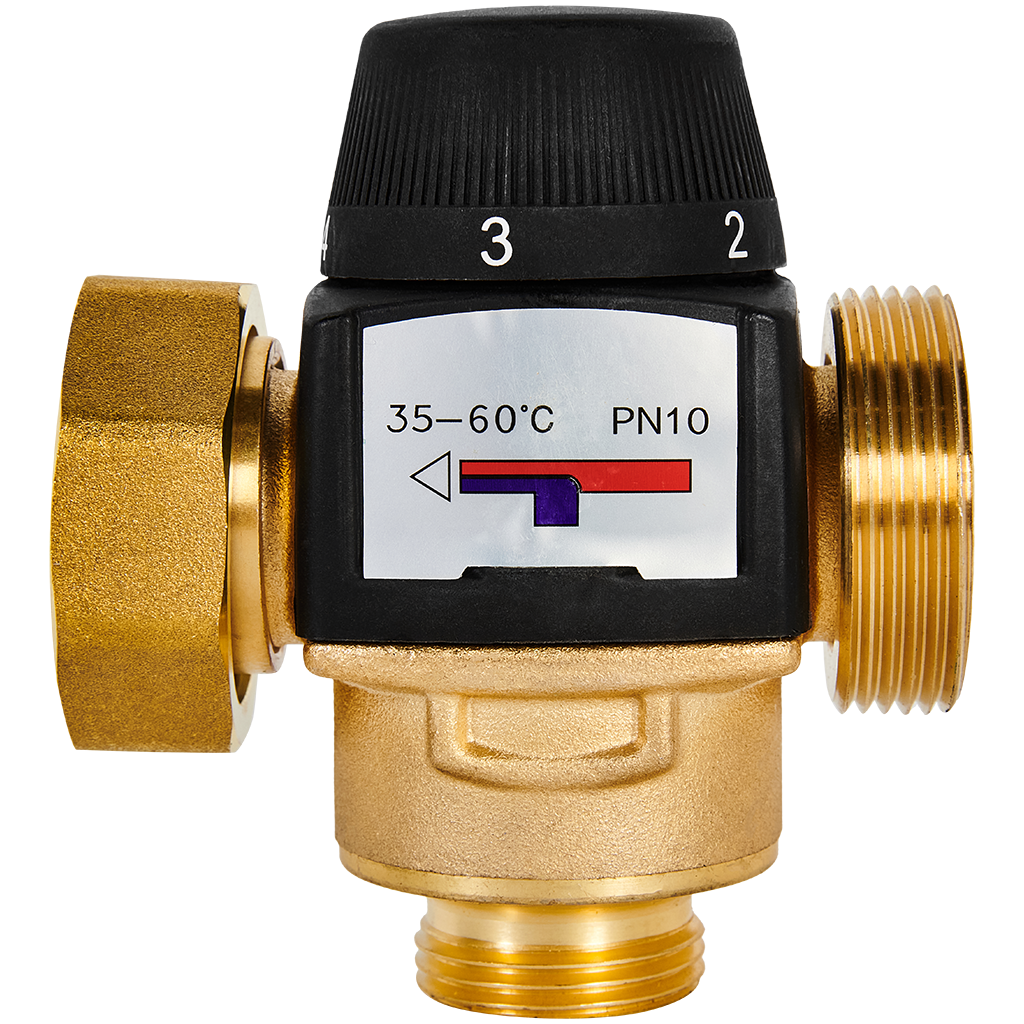 Термостатический смесительный клапан для систем отопления и ГВС ROMMER 1 НР 35-60°С KV 1,6 (боковое смешивание)