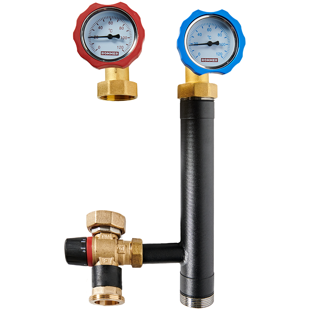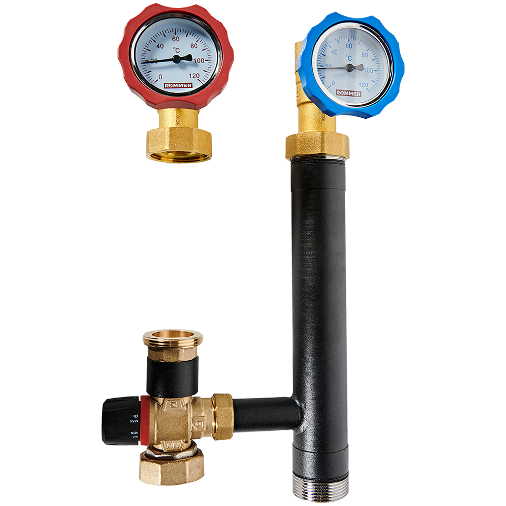 RDG-1002-002501 ROMMER Насосная группа с термостатическим смесительным клапаном (35-60°С) 1 без насоса в теплоизоляции