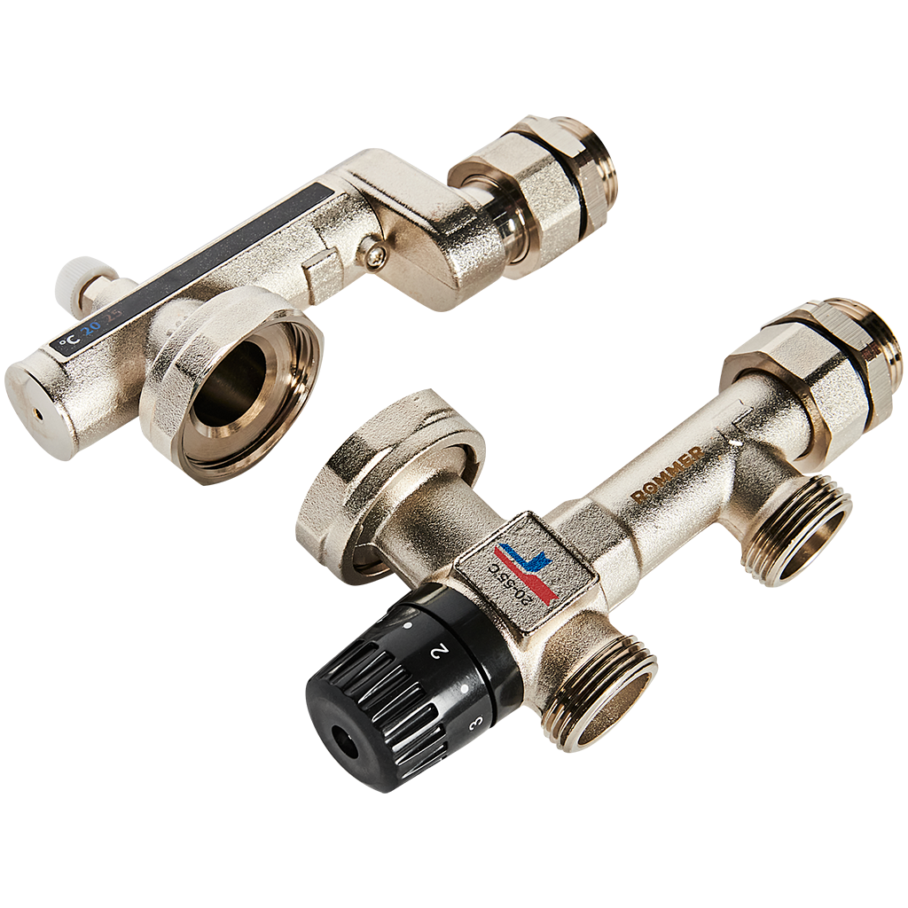 Насосная группа ROMMER с термостатическим смесительным клапаном (35-60°С) 1 без насоса RDG-0002-012503