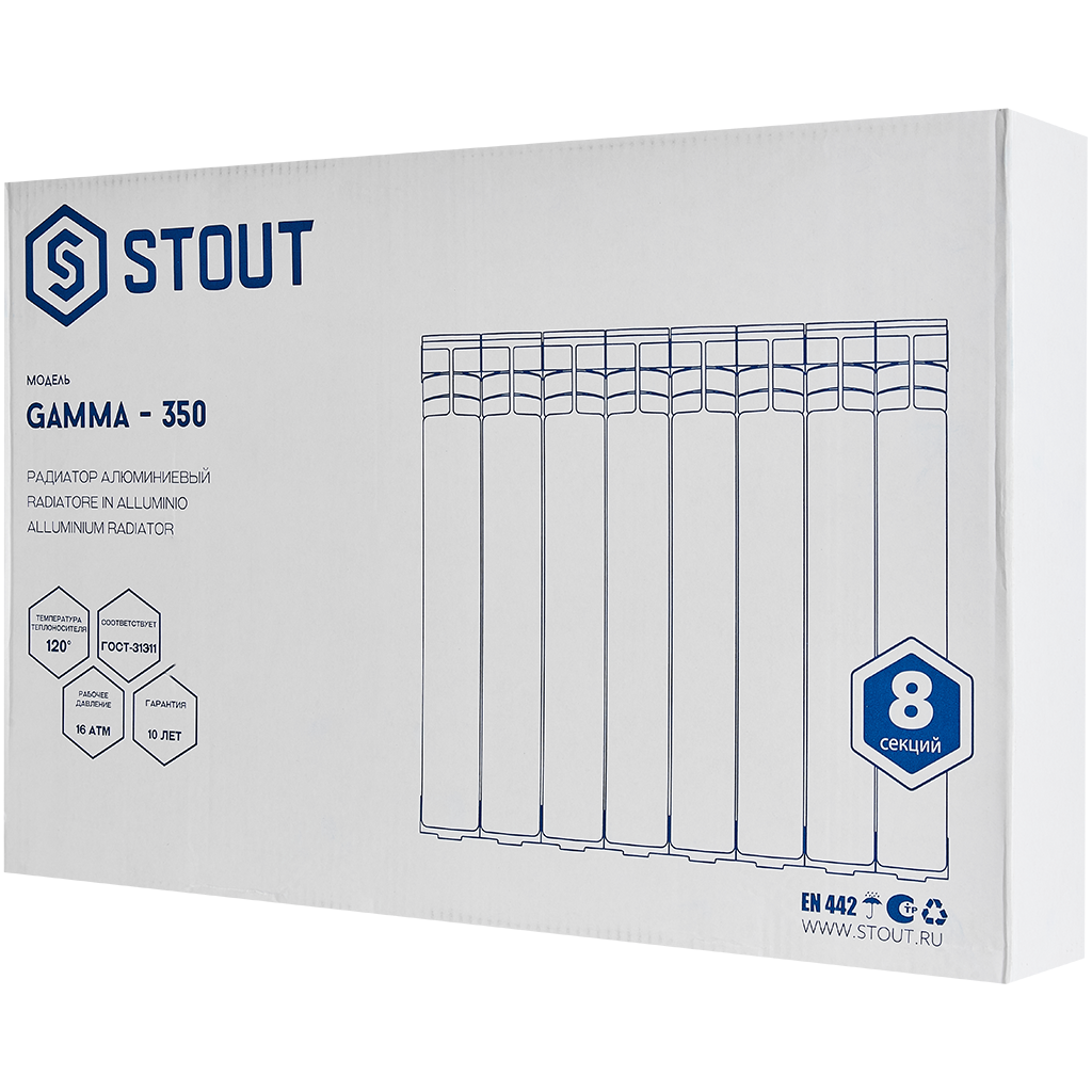 Радиатор алюминиевый STOUT GAMMA 350 8 секций боковое подключение (белый RAL 9010), SRA-3310-035008
