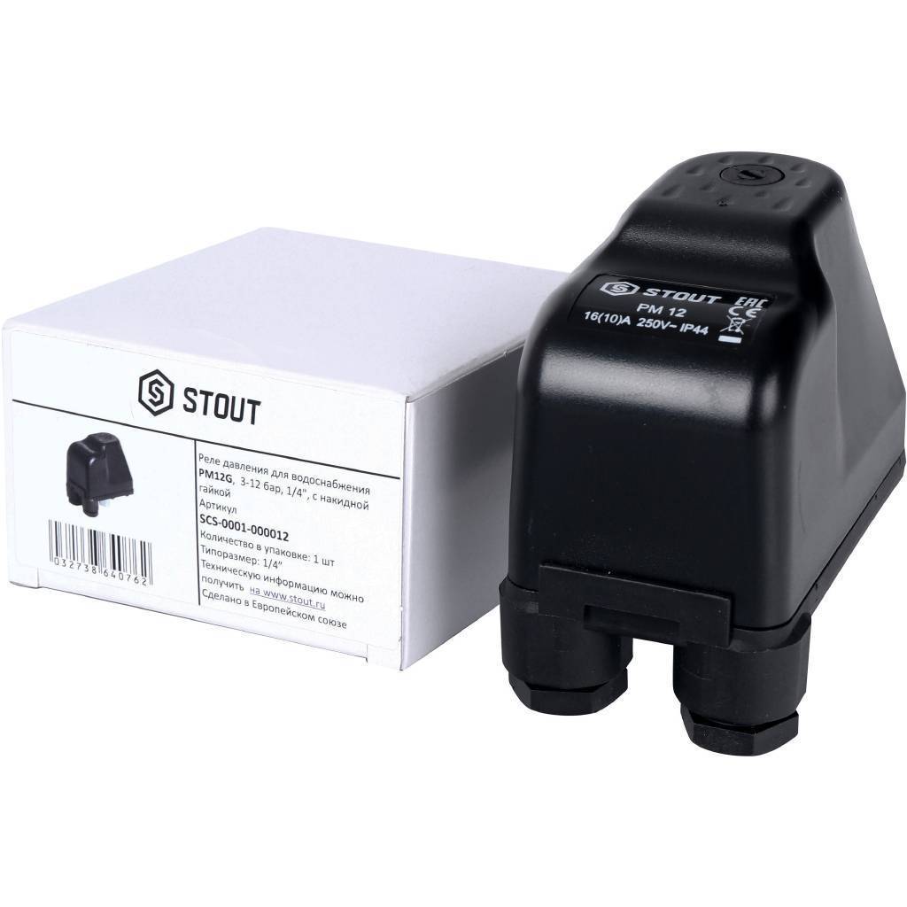 STOUT SCS-0001 LP/3 - это реле сухого хода для систем водоснабжения с рабочим диапазоном от 0 до 4 бар. Присоединительный размер - 1/4". Устройство обеспечивает защиту насоса от работы без воды, отключая его при падении давления ниже установленного предела.