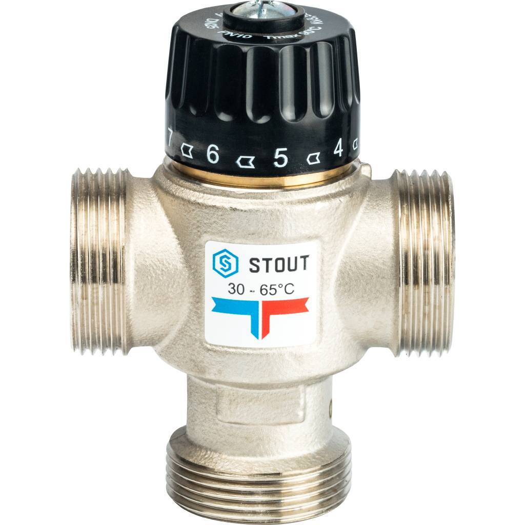Термостатический смесительный клапан для систем отопления и ГВС STOUT 3/4 НР 30-65°С KV 1,8