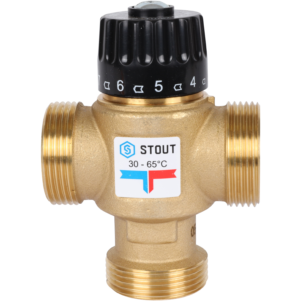 Термостатический смесительный клапан для систем отопления и ГВС STOUT 1 1/4 НР 30-65°С KV 3,5, SVM-0125-356532