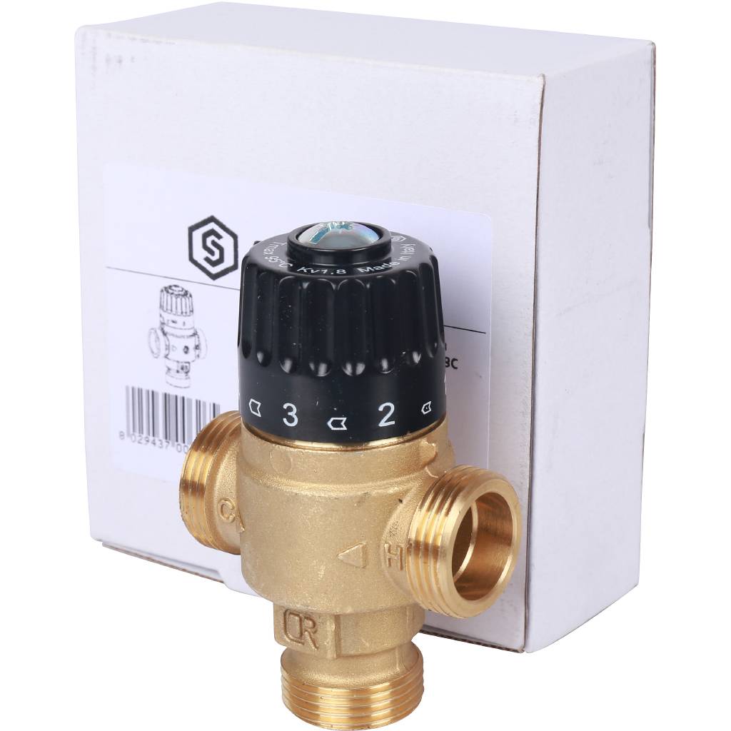 Термостатический смесительный клапан для систем отопления и ГВС STOUT 3/4 НР 30-65°С KV 1,8, SVM-0125-186520