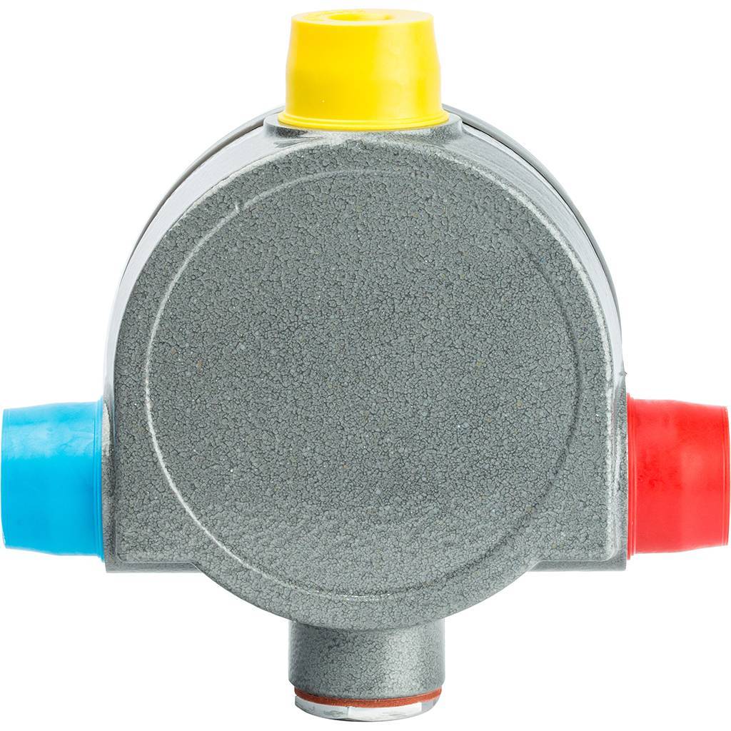 Корпус из латуни с наружным слоем серой эпоксидной краски и синей градуированной ручкой.